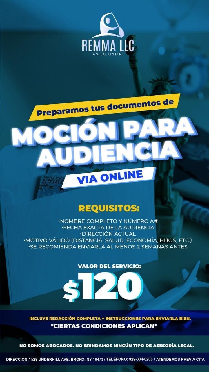 Este servicio no garantiza que se otorgue el aplazamiento. La decisión final depende del juez de inmigración. Nosotros presentamos la moción de forma correcta y profesional.